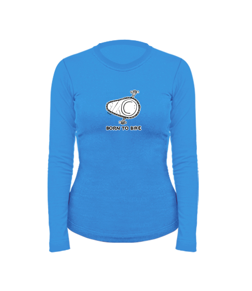 Women's cotton shirt with long sleeves for woman with design 1074 BORN TO BIKE in color CAPRI BLUE