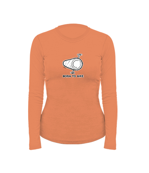 Women's cotton shirt with long sleeves for woman with design 1074 BORN TO BIKE in color MANDARIAN ORANGE