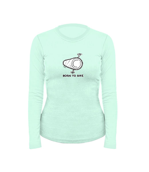 Women's cotton shirt with long sleeves for woman with design 1074 BORN TO BIKE in color MINT