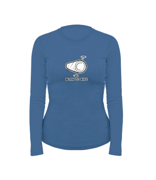 Women's cotton shirt with long sleeves for woman with design 1074 BORN TO BIKE in color MOONLIGHT BLUE