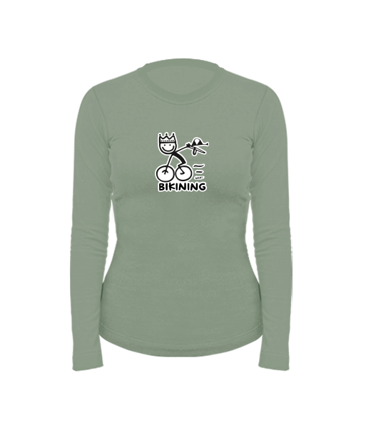Women's cotton shirt with long sleeves for woman with design 1080 BIKINING in color OLIVA
