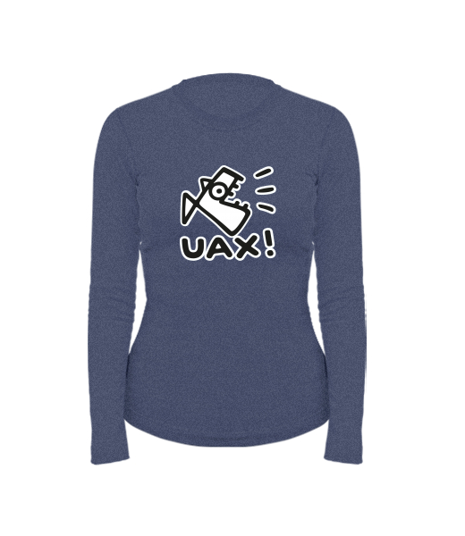 Women's cotton shirt with long sleeves for woman with design 1086 LOGO UAX! in color JEANS
