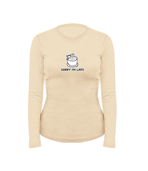 Women's cotton shirt with long sleeves for woman with design 1087 SORRY IM LATE in color CARAMEL