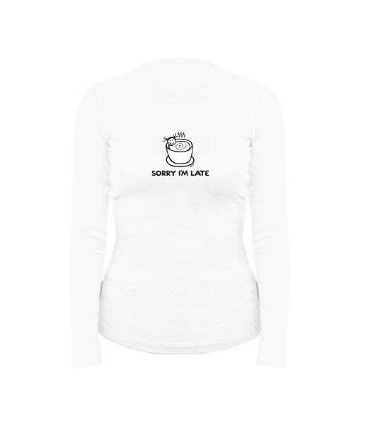 Women's cotton shirt with long sleeves for woman with design 1087 SORRY IM LATE in color WHITE
