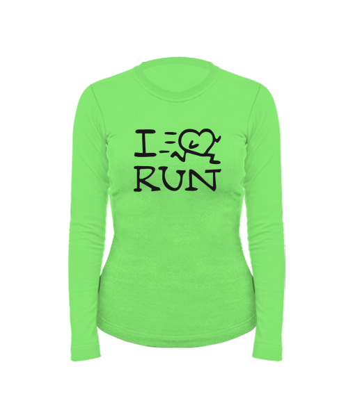 Women's cotton shirt with long sleeves for woman with design 1088 I LOVE RUN in color APPLE