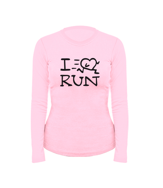 Women's cotton shirt with long sleeves for woman with design 1088 I LOVE RUN in color BABY PINK