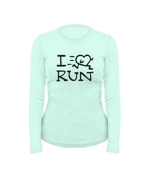 Women's cotton shirt with long sleeves for woman with design 1088 I LOVE RUN in color MINT