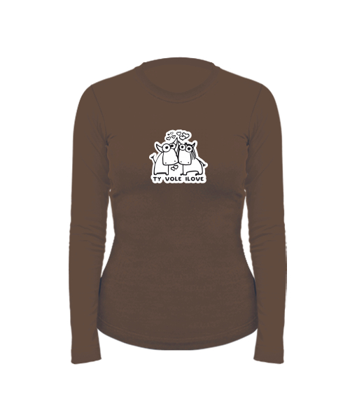 Women's cotton shirt with long sleeves for woman with design 1089 TY VOLE I LOVE in color CHESTNUT