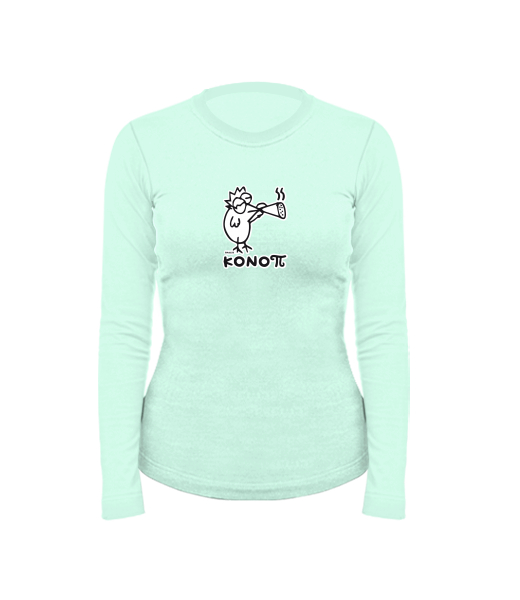 Women's cotton shirt with long sleeves for woman with design 1094 KONOPI in color MINT