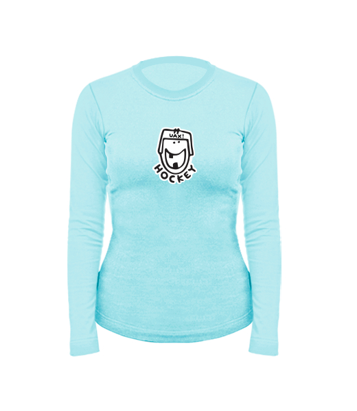 Women's cotton shirt with long sleeves for woman with design 1098 HOCKEY in color PASTEL BLUE
