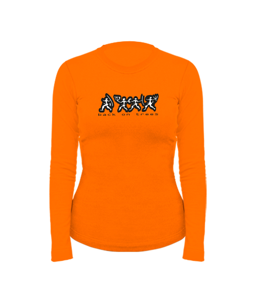 Women's cotton shirt with long sleeves for woman with design 11 BACK ON TREES in color SIGNAL ORANGE