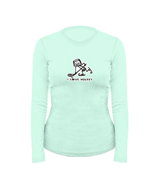 Women's cotton shirt with long sleeves for woman with design 1100 I LOVE HOCKEY in color MINT