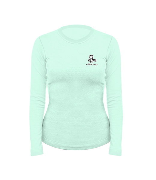 Women's cotton shirt with long sleeves for woman with design 1107 I LOVE GOLF in color MINT