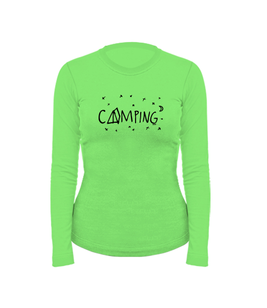 Women's cotton shirt with long sleeves for woman with design 1112 CAMPING in color APPLE