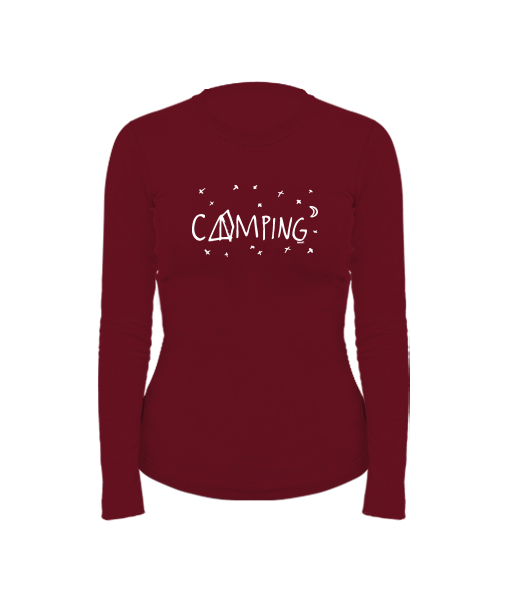 Women's cotton shirt with long sleeves for woman with design 1112 CAMPING in color DARK RED