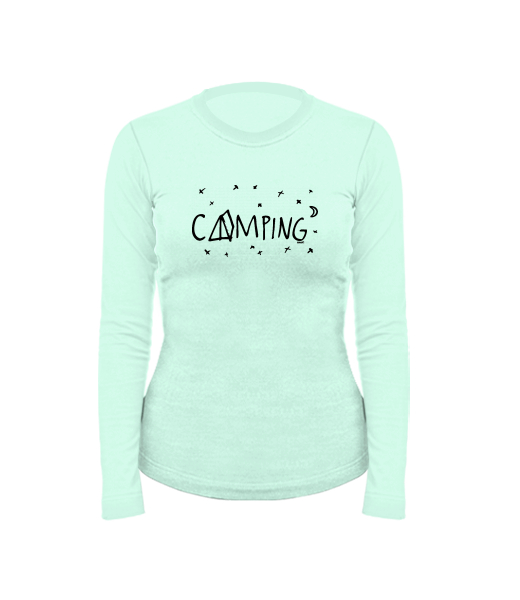 Women's cotton shirt with long sleeves for woman with design 1112 CAMPING in color MINT
