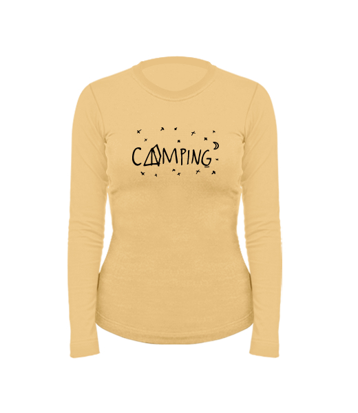 Women's cotton shirt with long sleeves for woman with design 1112 CAMPING in color MUSTARD