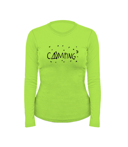 Women's cotton shirt with long sleeves for woman with design 1112 CAMPING in color PARROT GREEN