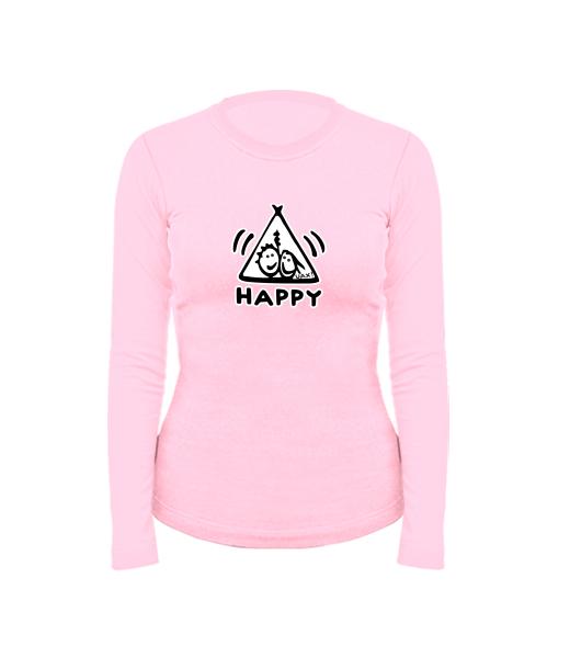 Women's cotton shirt with long sleeves for woman with design 1113 HAPPY in color BABY PINK