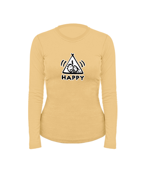 Women's cotton shirt with long sleeves for woman with design 1113 HAPPY in color MUSTARD
