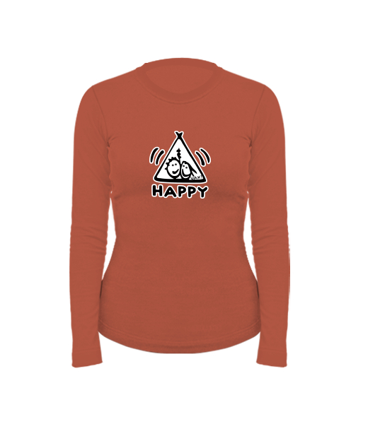 Women's cotton shirt with long sleeves for woman with design 1113 HAPPY in color TERRA