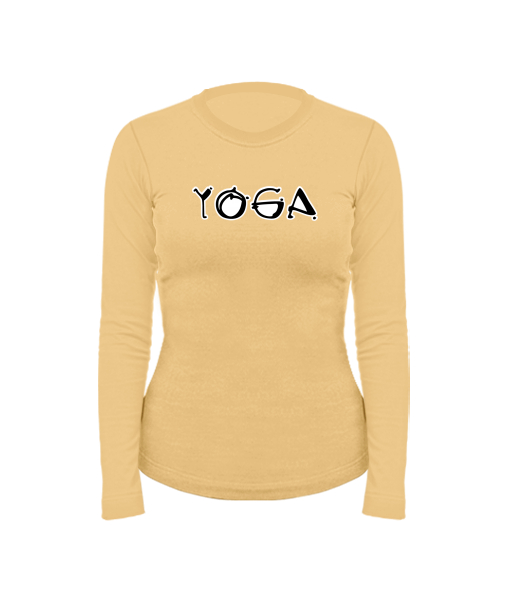 Women's cotton shirt with long sleeves for woman with design 1115 YOGA in color MUSTARD