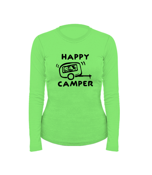 Women's cotton shirt with long sleeves for woman with design 1116 HAPPY CAMPER in color APPLE