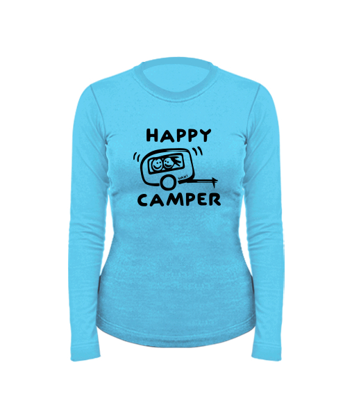 Women's cotton shirt with long sleeves for woman with design 1116 HAPPY CAMPER in color BLUE ATOLL