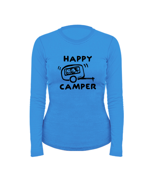 Women's cotton shirt with long sleeves for woman with design 1116 HAPPY CAMPER in color CAPRI BLUE