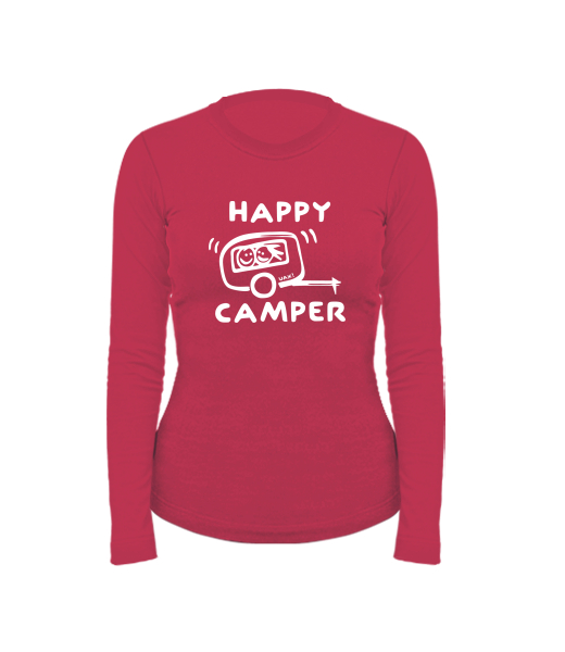 Women's cotton shirt with long sleeves for woman with design 1116 HAPPY CAMPER in color CHILLY PEPPER RED