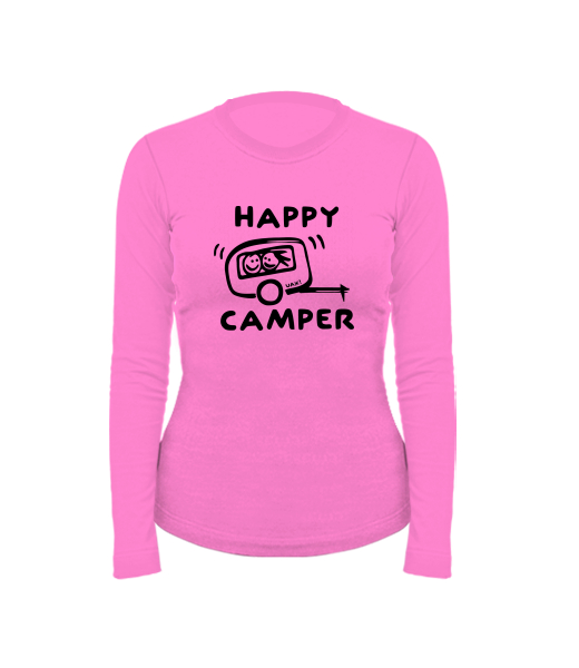 Women's cotton shirt with long sleeves for woman with design 1116 HAPPY CAMPER in color CLASSIC PINK