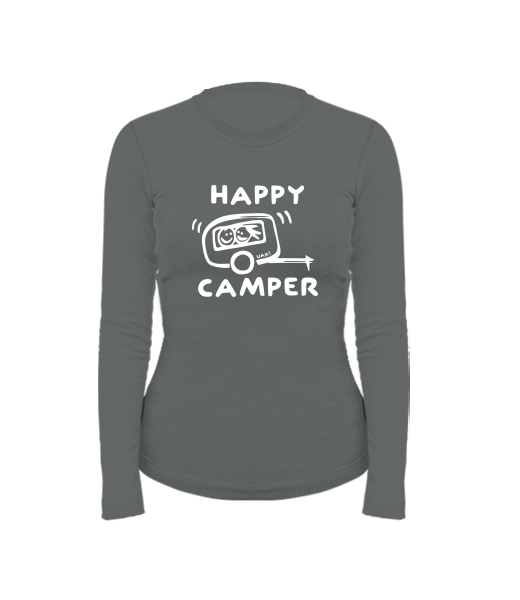 Women's cotton shirt with long sleeves for woman with design 1116 HAPPY CAMPER in color DARK GRAY
