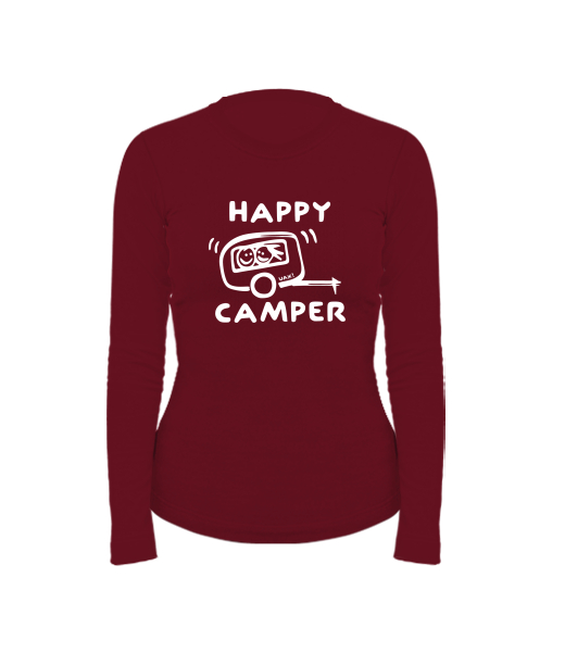Women's cotton shirt with long sleeves for woman with design 1116 HAPPY CAMPER in color DARK RED
