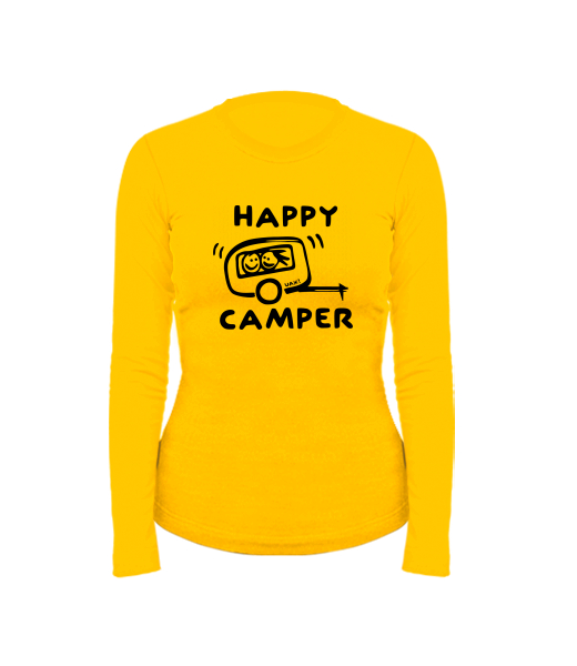 Women's cotton shirt with long sleeves for woman with design 1116 HAPPY CAMPER in color GOLDEN CREAM