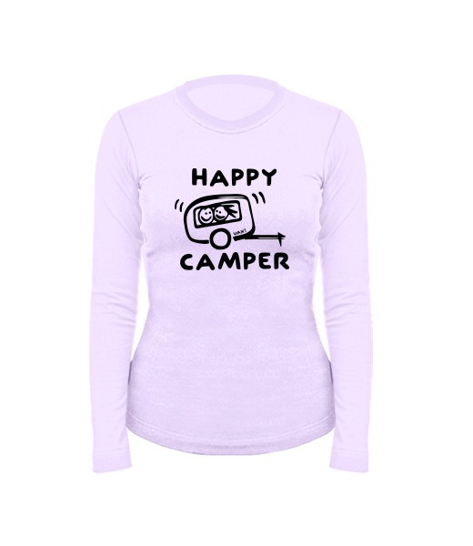 Women's cotton shirt with long sleeves for woman with design 1116 HAPPY CAMPER in color LAVENDER