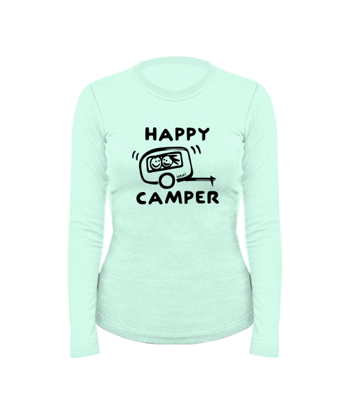 Women's cotton shirt with long sleeves for woman with design 1116 HAPPY CAMPER in color MINT