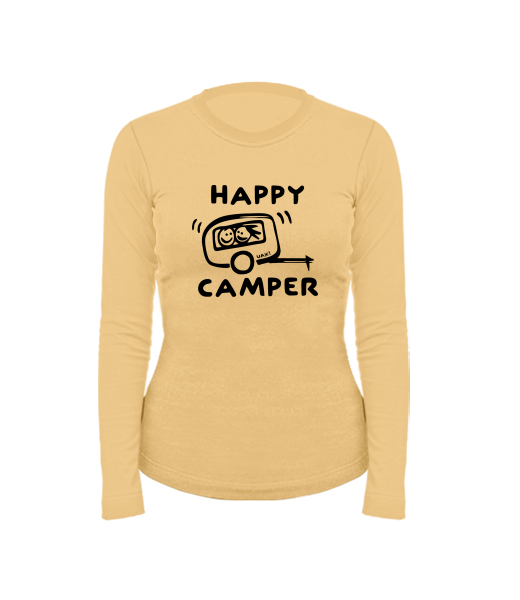 Women's cotton shirt with long sleeves for woman with design 1116 HAPPY CAMPER in color MUSTARD