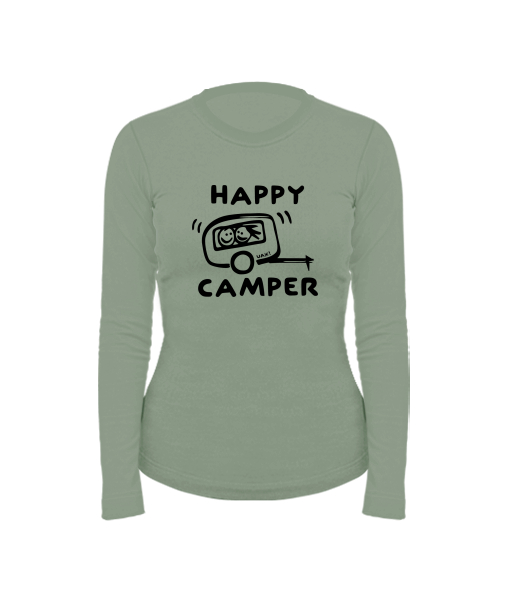 Women's cotton shirt with long sleeves for woman with design 1116 HAPPY CAMPER in color OLIVA