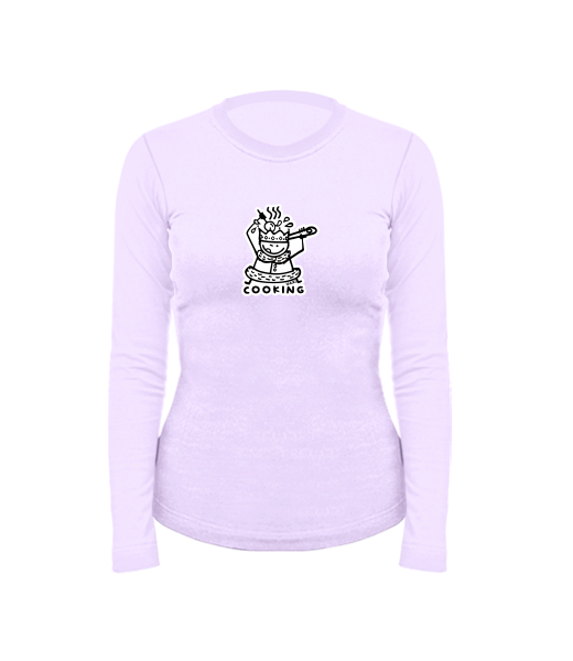 Women's cotton shirt with long sleeves for woman with design 1117 COOKING in color LAVENDER