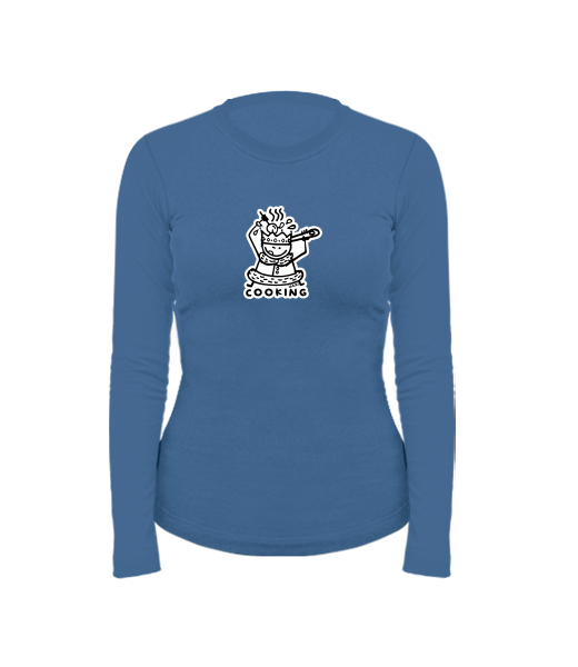 Women's cotton shirt with long sleeves for woman with design 1117 COOKING in color MOONLIGHT BLUE