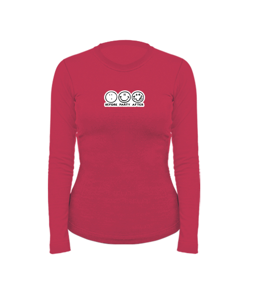 Women's cotton shirt with long sleeves for woman with design 1120 BEFORE PARTY AFTER in color CHILLY PEPPER RED