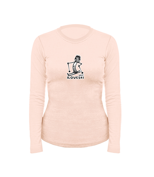 Women's cotton shirt with long sleeves for woman with design 1122 I LOVE SKI in color CAPPUCINO