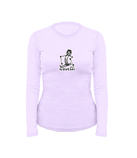 Women's cotton shirt with long sleeves for woman with design 1122 I LOVE SKI in color LAVENDER