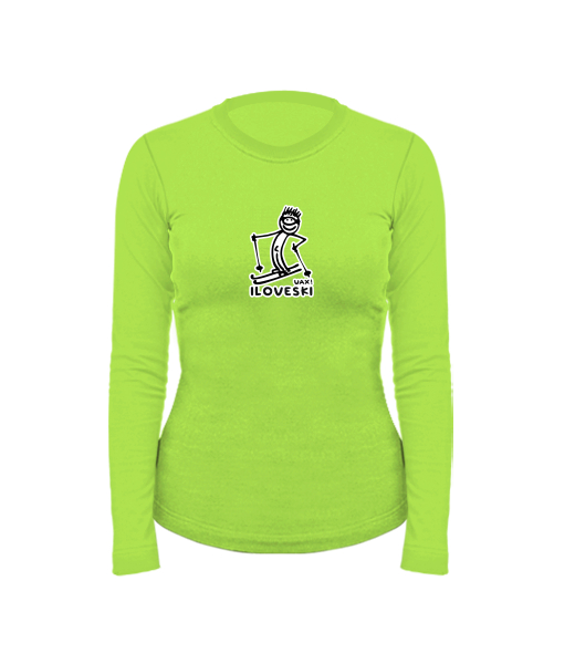 Women's cotton shirt with long sleeves for woman with design 1122 I LOVE SKI in color PARROT GREEN