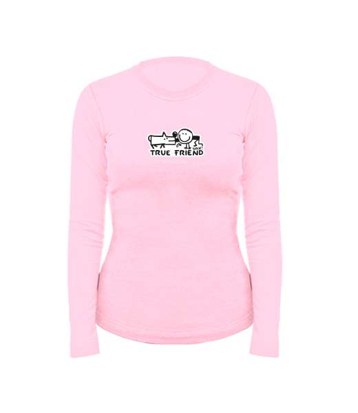 Women's cotton shirt with long sleeves for woman with design 1123 TRUE FRIEND in color BABY PINK