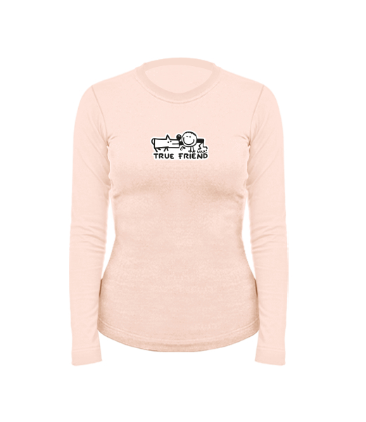 Women's cotton shirt with long sleeves for woman with design 1123 TRUE FRIEND in color CAPPUCINO