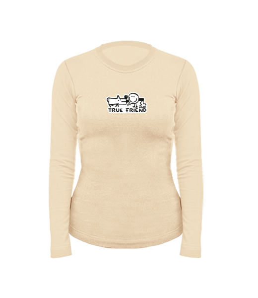 Women's cotton shirt with long sleeves for woman with design 1123 TRUE FRIEND in color CARAMEL