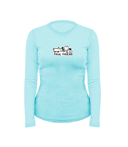 Women's cotton shirt with long sleeves for woman with design 1123 TRUE FRIEND in color PASTEL BLUE