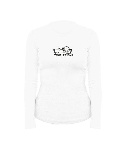 Women's cotton shirt with long sleeves for woman with design 1123 TRUE FRIEND in color WHITE