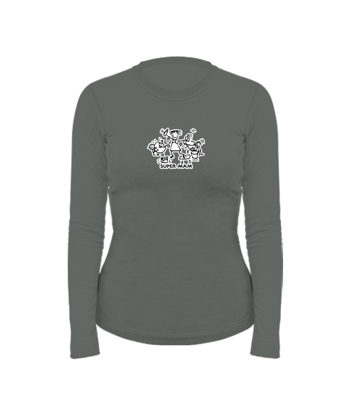 Women's cotton shirt with long sleeves for woman with design 1126 SUPER MAM in color DARK GRAY